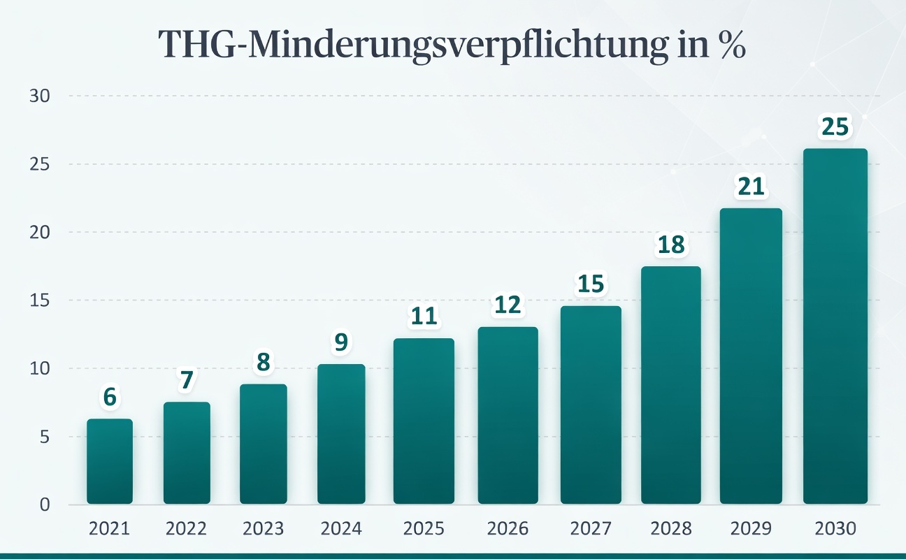 Der Anstieg der THG-Quote von heute 12% auf 25% bis 2030 ist gesetzlich festgelegt. Im Dezember 2025 wurde vom Gesetzgeber im Zuge der RED-III-Umsetzung beschlossen, die THG-Quote bis in das Jahr 2040 zu verlängern, die dann schrittweise auf 59% ansteigen wird: